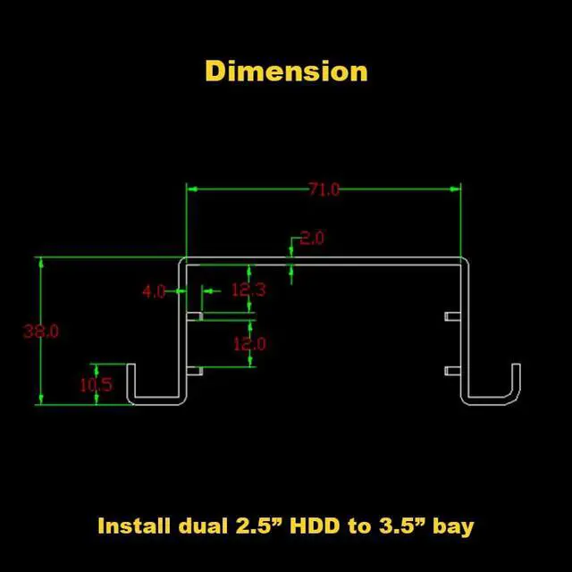 2mm black anodized aluminum bracket Fits in a 3.5-inch drive bay, and allows the mounting of up to 2 x 2.5- inch drive Compatible with any 2.5 inch SATA HDD,SAS hard drive and solid state disk(SSD) 2packages mounting accessories are included