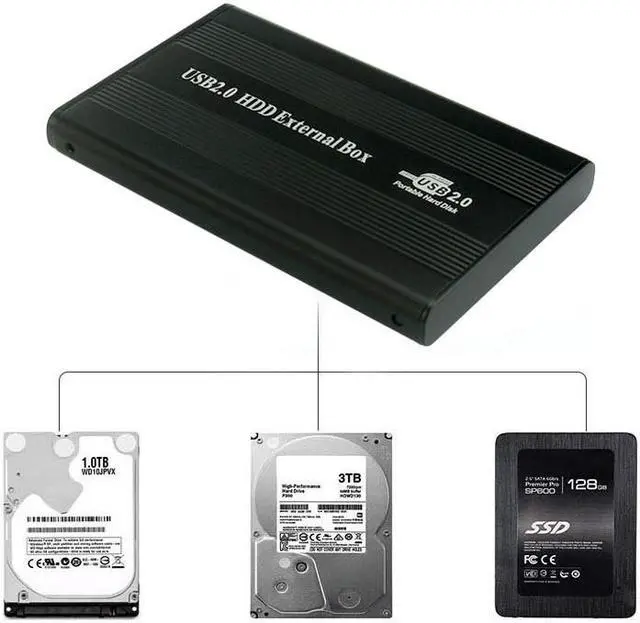 USB 2.0 HDD External Box Accommodates a 2.5 inch Hard Drive.