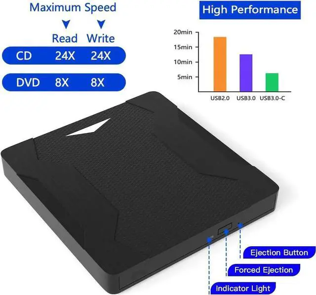 USB 3.0 Max 8x DVD Read/Write Speed and Max 24x CD Read/Write Speed, provide high writing and reading speed
