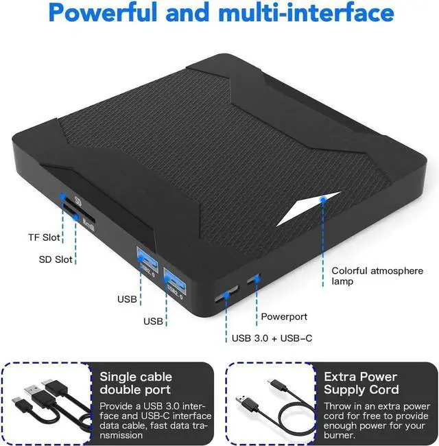 ![Alt view image 7 of 7 - [New 5 in 1] External CD/DVD Drive, USB 3.0 & Type-C Portable CD/DVD+/-RW Optical Drive/DVD Player for Laptop, External DVD Drive CD Burner Compatible with Desktop PC Laptop Windows Linux MacOS](https://c1.neweggimages.com/productimage/nb640/C5JPS26041408CDCX30.jpg)