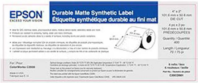 EPSON MEDIA FOR C3500 4X2 DIE CUT MATTE SYNTH LBL PK OF 6 400 LABLESROLL SOLD BY CASE