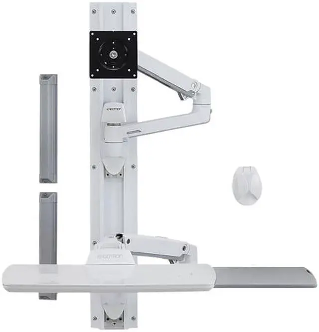 Make the most of tight spaces with this wall mount system- made with durable polished aluminum construction. This solution accommodates an lcd and keyboard- while providing vertical and side-to-side motion for easy repositioning.