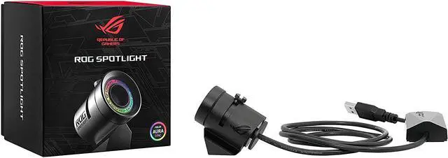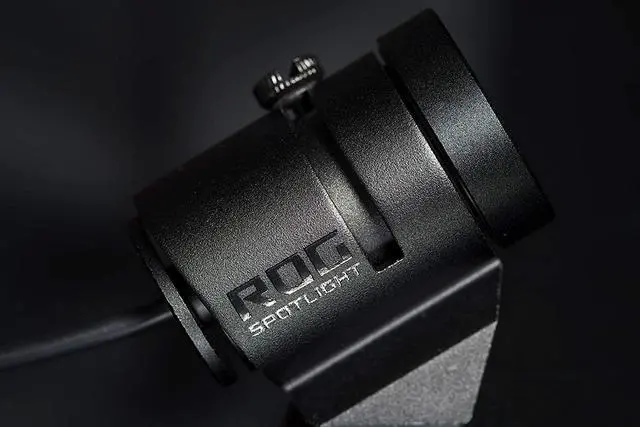 Cast your gaming prideROG Spotlight lets you project the iconic ROG logo with customizable colors, and coordinate light effects with other Aura Sync-enabled gear. Simply attach it to any metal surface using its magnetic base. ROG Spotlight gives your gaming setup a more vibrant look. Fully rotatable A 360-degree rotatable lens ensures the logo is always positioned upright, regardless of where ROG Spotlight is placed. Adjustments can easily be done using a coin as a screwdriver. Outshine the competition Featuring ASUS Aura Sync RGB technology, ROG Spotlight is designed to add some flair to your gaming setup, with a full palette of colors and customizable lighting effects.