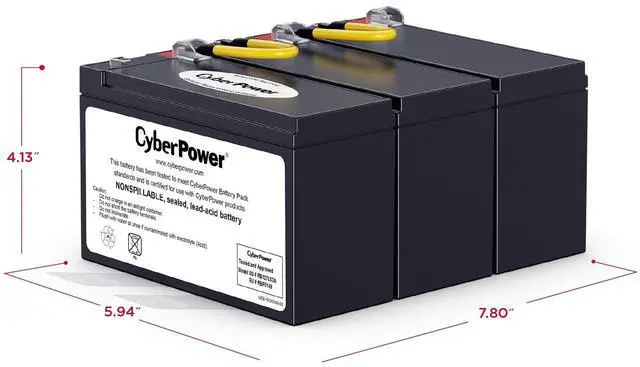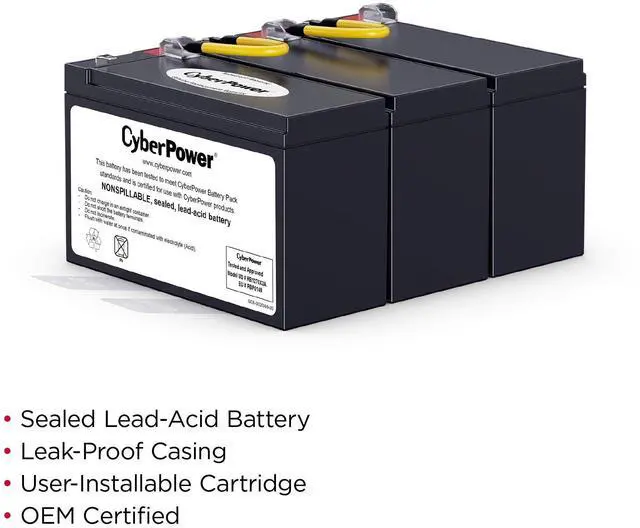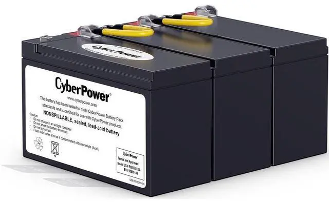 /The RB1270X3A UPS Replacement Battery Cartridge restores life to CyberPower UPS systems that have weak or completely depleted internal batteries. The RB1270X3A contains three 12V/7Ah batteries, certified to meet or exceed original manufacturer specifications. This leak-proof, sealed lead-acid battery never requires replacement fluid. The pre-assembled cartridge installs easily into your CyberPower UPS system and is shipped with reusable packaging for delivering expired batteries to a suitable recycling center. The RB1270X3A comes with instructions, recycling information, and an eighteen-month warranty.