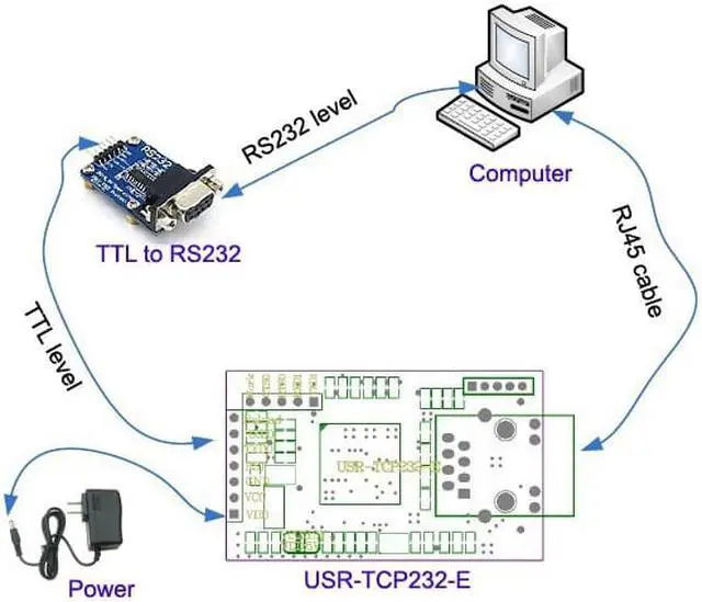 Features: New Cortex-M3 kernel, industrial working temperature range, elaborate optimization LWIP protocol stack, stable and reliable. Two way serial port, can set COM port and working mode independently, work independently, support RTS/CTS hardware flow control. Auto-MDI/MIDX function, discretionarily connect cross-over or direct network cable, automatic switching. Distinguish the connected serial port via port number. Pin compatible with the best selling USR-TCP232-T. Support TCP Server, TCP Client, UDP, UDP Server, HTTPD Client various of work modes. Support virtual serial work way, provide corresponding software. Serial port highest baud rate up to 230400. 5 V 3.3 V double power input, just choose one power supply. Needle type capsulation, small volume, facilitate embedded applications. TTL serial level, 3.3 V standards, compatible with 5 V level, 5 V microcontroller IO can directly connected. Support DHCP automatically access IP, can inquire the facility within network through the UDP broadcast protocol. Supply the protocol for VIP customers, can integrate parameter setting function to users' software applications. Provide PC TCP/IP SOCKET programming example, VB C++ Delphi Android IOS.