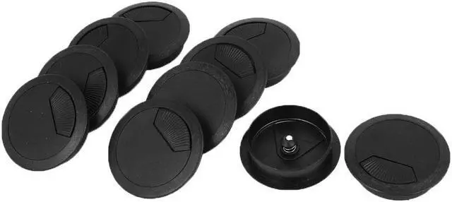 Unique Bargains 10 Pcs 60mm Round Black Plastic Computer Desk Grommets Wire Cable Hole Cover