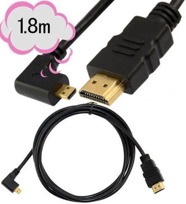 1.8 m 6Ft HDMI 1.4 Male to Micro HDMI Male Left Angled Cable Cord Adapter HDTV; Micro HDMI left elbow 90 degrees on the HDM bus line 1.8 meters -HDMI connector 1: mini HDMI (type D), gold plated, 90 degree left elbow -HDMI connector 2: standard HDMI (type A), gold-plated - Conforms to HDMI 1.4 standard -