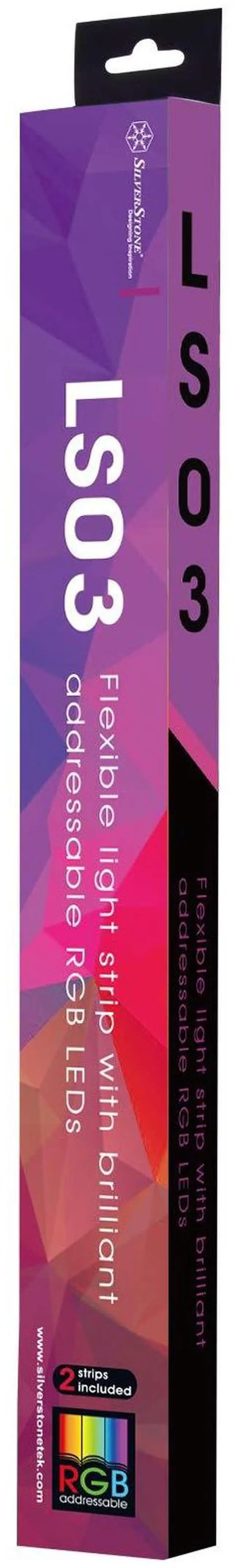 LED strip is a must have for any enthusiast looking to brighten up their PCs. SilverStone created the LS03, an addressable RGB LED strip which allows for control of each individual LED to display colors independently for nearly unlimited combination of colors and gradients. It can be controlled by hardware or software that can manipulate +5V, D, G, signals such as addressable RGB LED control box or motherboard to display users desired colors on each LED. It also has the ability to daisy chain multiple light strips to accommodate various applications. Finally, to improve ease of installation and replacement, the LS03 has both built-in magnetic strip and adhesive tape to better meet the demand of enthusiasts that require more flexibility in installation.