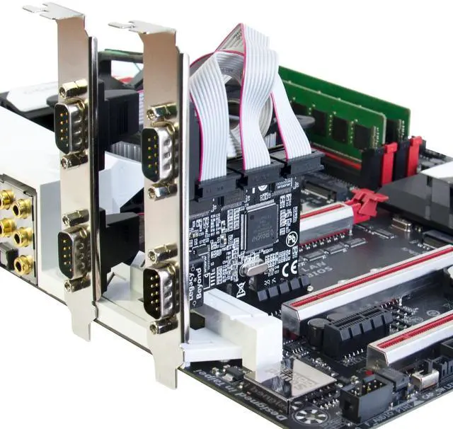 ADDS FOUR RS-232 SERIAL PORTS TO A PCI EXPRESS ENABLED COMPUTER