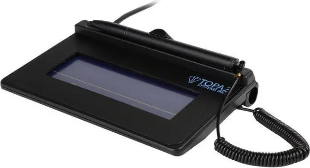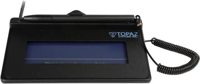 Topaz SigLite 1x5 is Topaz's low-cost pressure-sensitive electronic signature pad. It features all the high quality biometric and forensic capture techniques of a SignatureGem tablet but with a low-cost touchpad and stylus in place of the active electromagnetic pen and sensor. Featuring a touchpad (protected by an optional replaceable overlay for longer life) and stylus this model series shows the signature on the computer screen.
