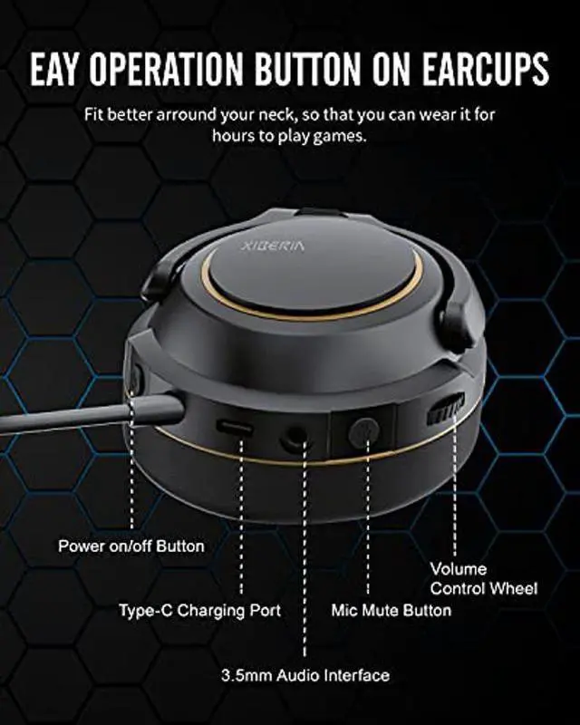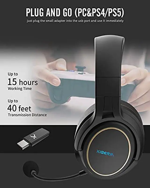 XIBERIA G01 Wireless Gaming Headset with Microphone 5.8GH z Anti-Interference for PC/PS5/PS4/MAC/Laptop, Lossless Ultra-Low Latency, Noise Cancelling MIC, Long Battery Life