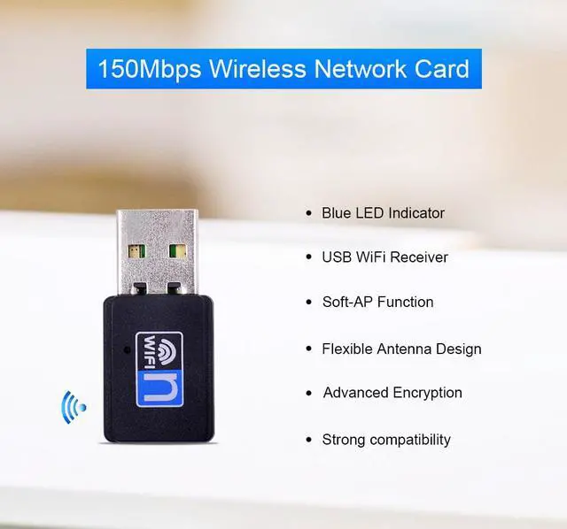 CHIPAL mini adaptateur usb sans fil, récepteur wi-fi 150mbps, adaptateur ethernet, carte réseau, compatible avec ordinateur Windows PC
