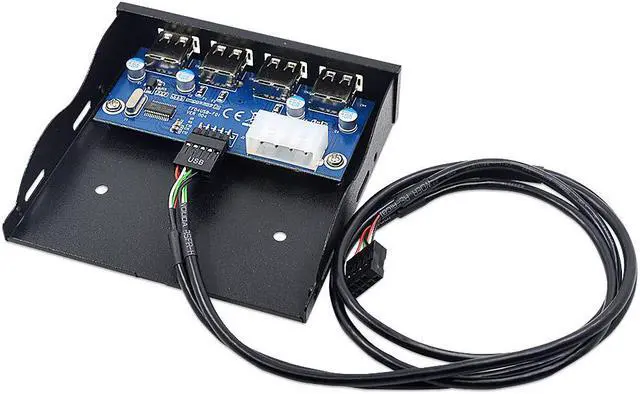 MJTEK adaptateur d'extension de panneau avant avec câble pour ordinateur de bureau, 3.5 pouces, 4 Ports USB 2.0 HUB