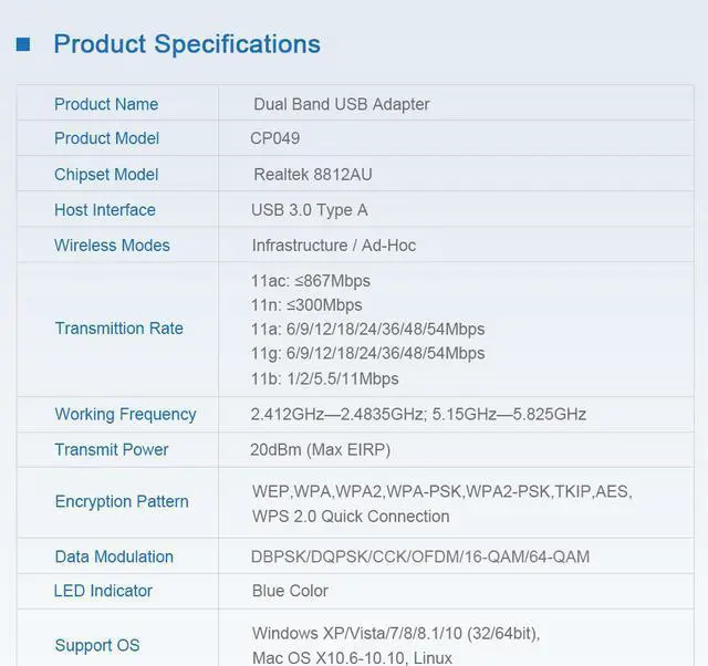 Cet adaptateur USB est avec un taux de transmission sans fil à haute vitesse de 1200Mbps, qui peut fournir un signal WiFi plus fort pour vous aider à surfer sur Internet en douceur.