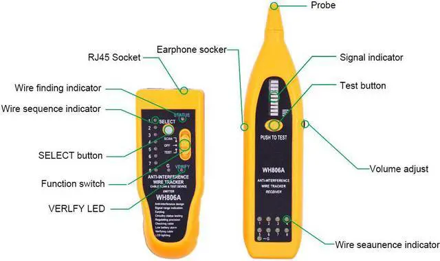 CHIPAL WH806A traceur de fil de Toner pour téléphone RJ11 RJ45 Cat5 Cat5E Cat6 Cat6E, testeur de câble réseau Ethernet LAN