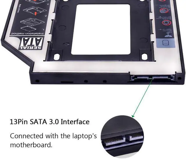 Le Caddy SATA-SATA universel est compatible avec les ordinateurs portables qui ont une baie optique de 9.5mm d'épaisseur avec interface SATA.