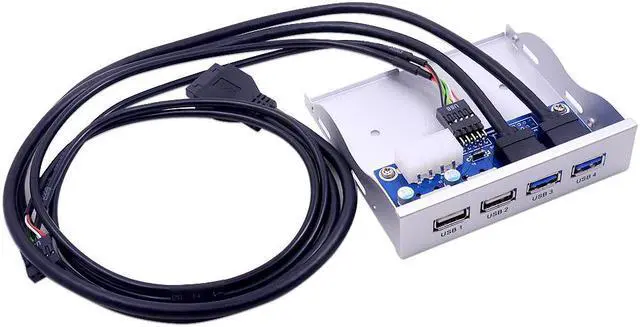 MJTEK répartiteur à 4 Ports USB 2.0 USB 3.0 argent, Hub de panneau avant 19 + 1 20 broches, adaptateur Combo interne pour baie de disquette de bureau de 3.5 pouces