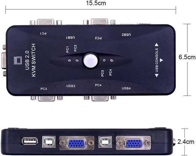 Remarque: le commutateur KVM doit être alimenté, sinon vous ne pouvez pas basculer entre 4 ordinateurs.