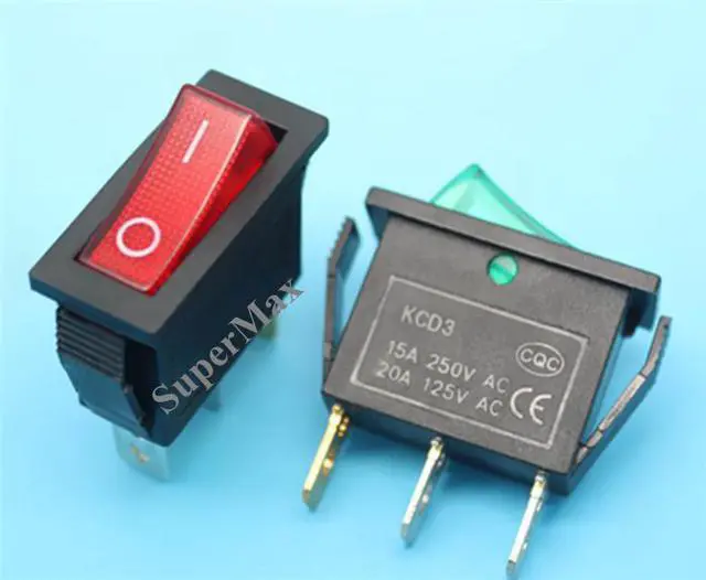 Interrupteur à bascule électrique KCD3 100 AC, LY604-BA1 pièces, 3 broches, ON-OFF, rouge/vert, pour équipement électronique