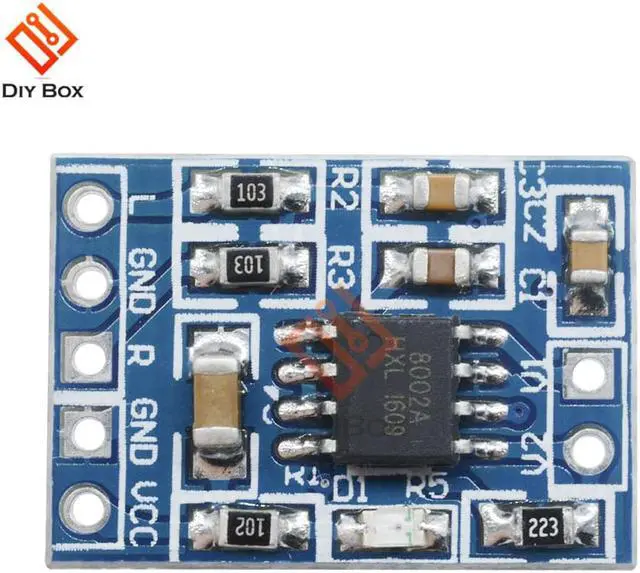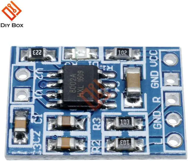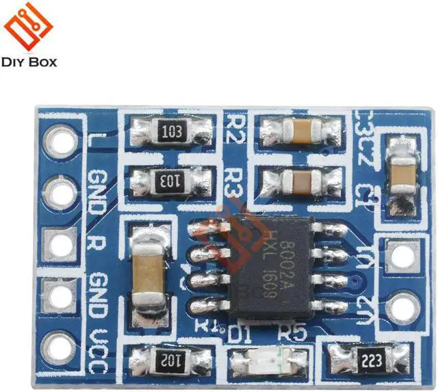 Onboard HXJ8002 single channel 3W, BTL bridge connected audio power amplifier chip.