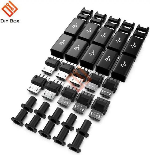 10Pcs/lot Micro USB Cable Male Plug Connector DIY Kit With Covers Case Black DIY Data Cable Accessories Mini Plug Terminals