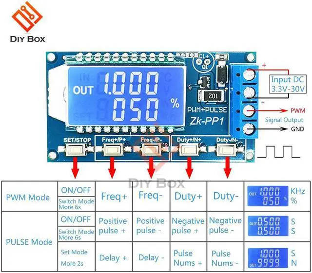 3.3 -30V PWM Pulse Number Frequency Duty Cycle Adjustable Signal Generator Module LCD Display Square Wave Rectangular Wave