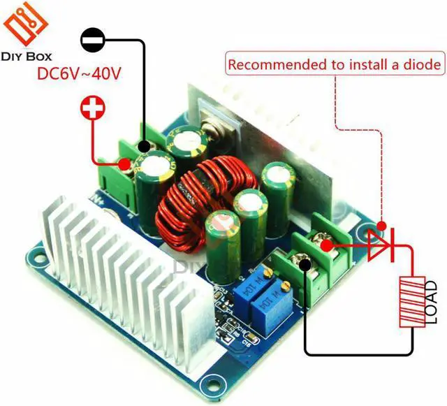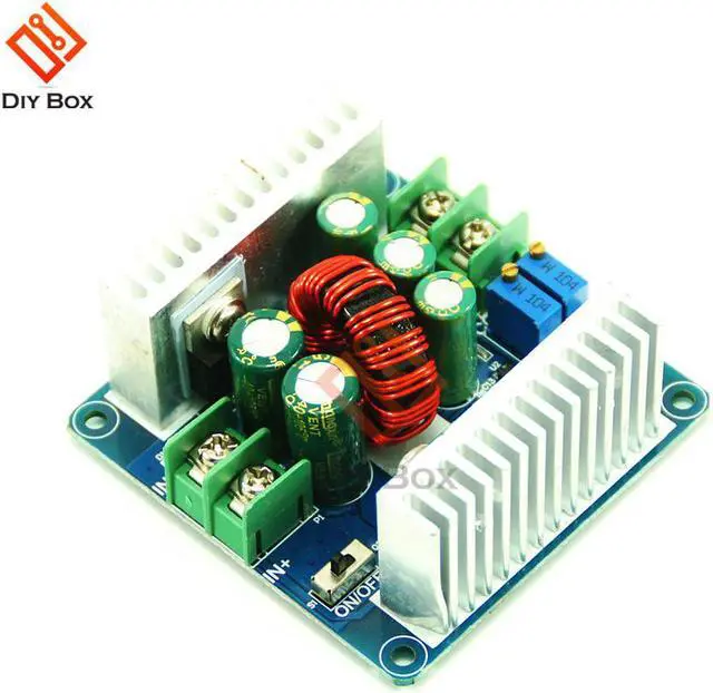 The step-down module has 2 heat sinks to enhance heat dissipation.
