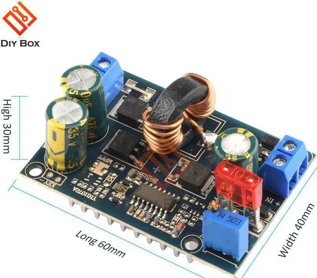 60W automatic buck-boost module, 5-32V wide input voltage, 1.2-20V adjustable wide output voltage, maximum 5A output current.