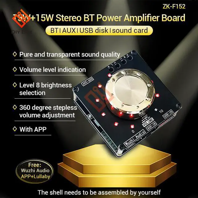 1*ZK-F152 Cool volume indicator Bluetooth audio amplifier board module 2.0 dual channel 15W+15W