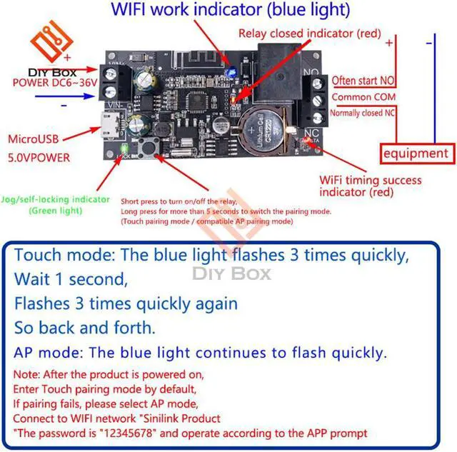 Model Number:WFBJ WIFI mobile phone remote control relay module DC6V-36V with butto