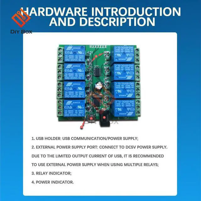 8. The module has overcurrent protection and relay diode wheeling protection functions.