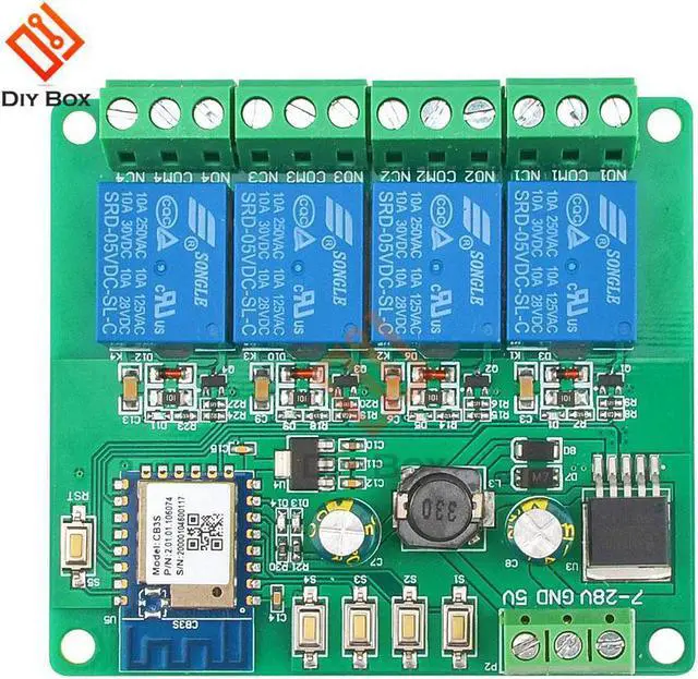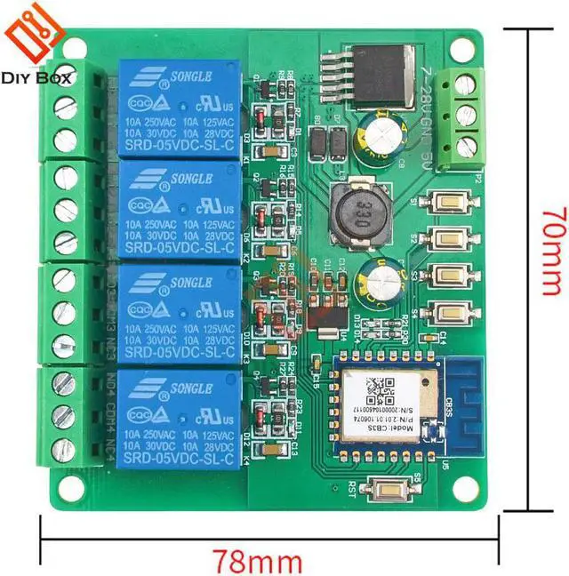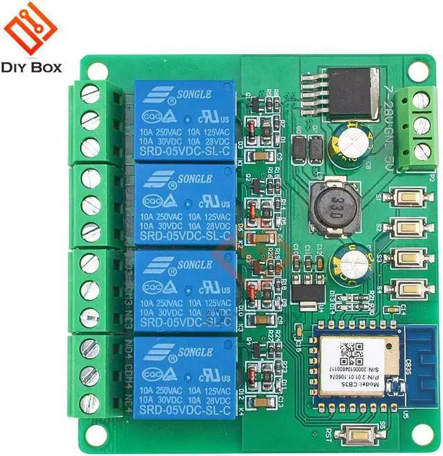 6,Onboard 4 5V, 10A/250V AC 10A/30V DC relays, which can be activated continuously for 100,000 times, have diode effusion protection, and have a short response time;