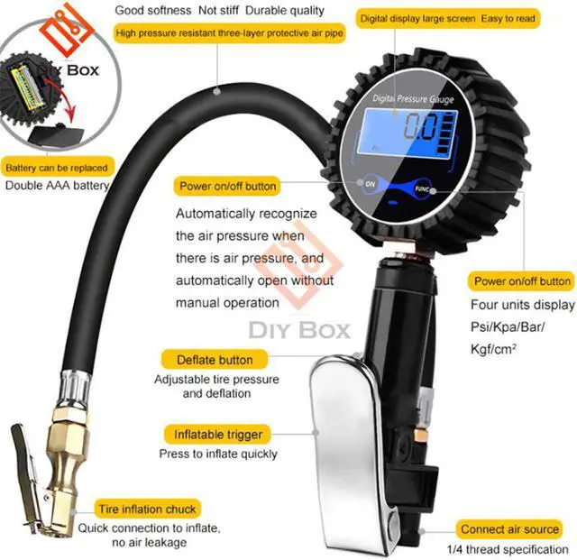 [Pressure unit]: Four units can be switched Psi, Kpa, Bar, Kgf/cm^2