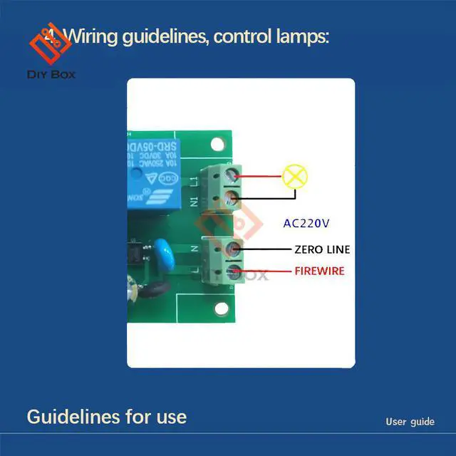 6. Onboard a 5V, 10A/250V AC 10A/30V DC relay, which can be activated continuously for 100,000 times, has diode effusion protection, and has a short response time;