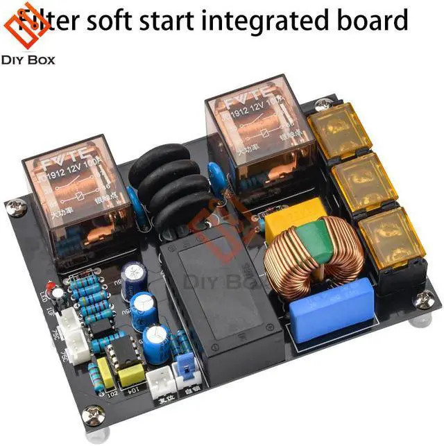 This board integrates high-power soft-start and filtering in one. The power board uses 1.6MM double-sided tinned PCB board, the board supports power: within 3500W