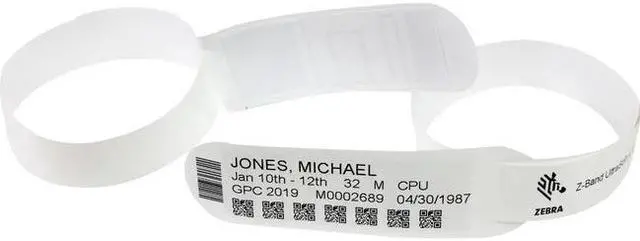 Zebra 10015357K HC-100 Z-Band Ultrasoft Polypropylene Wristband Cartridge, Direct Thermal, 1" x 7", Perforated, 250 Wristbands per Cartridge - 1 Case (6 Cartridges)