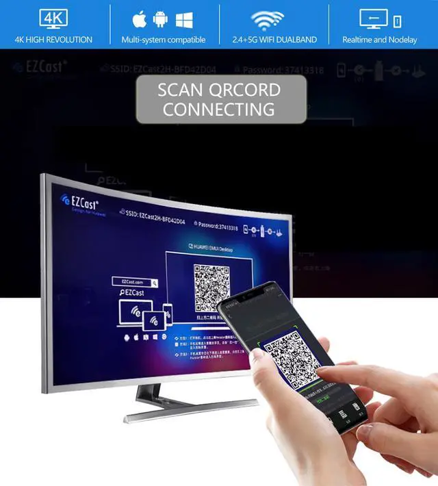 Ezcast H2 TV Stick WIFI TV Receiver 4K 5G HDTV Dongle ANYCAST MIRACAST AIRPLAY DLNA 5G TV STICK