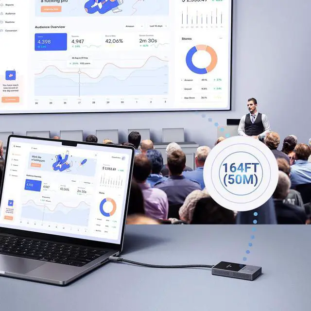 The transmitter can be connected to devices using Windows/ MacOS/Linux/iOS that use the USB C port and support the DP protocol, such as: MacBook Air, MacBook Pro, Dell XPS13, Dell XPS15,etc.