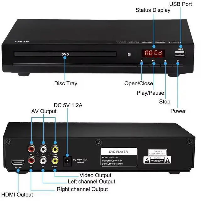 DVD238 Home DVD/EVD Player HD Disc Player, Mini CD/VCD Compatible, Kid-Friendly