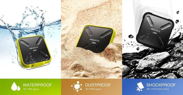 Waterproof, shockproof and dustproof external SSD from AData. The SD700 comes with a USB3.1 interface, it is ultra-light and incredibly thin. Carry it with you everywhere and you can be assured that your valuable data is safe. 512GB version in all-black color scheme.