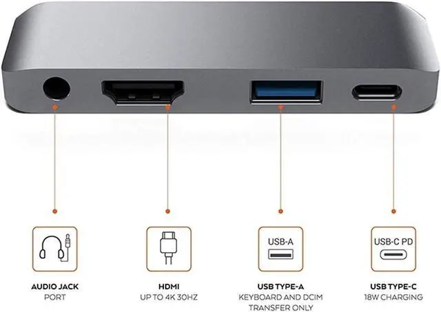 USB-C PD 3.0 charging, USB 3.0 port 3.5mm headphone jack, all over a single USB-C connection.