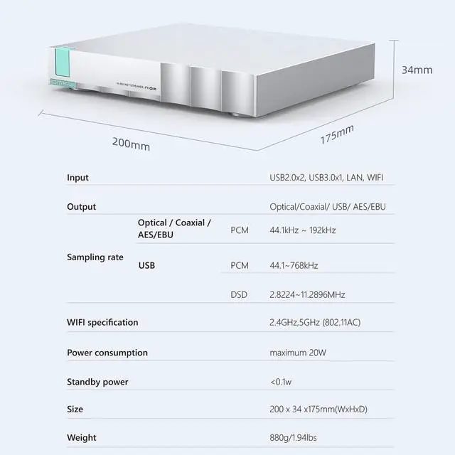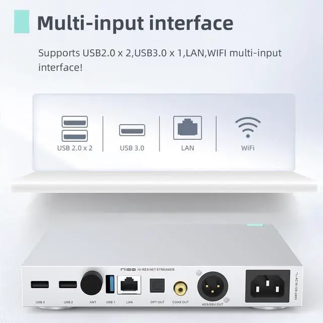 N100 Hi-Res Network Streamer New DAC chip Supports Connect VOLUMIO Tidal and QOBUZ Output Optical/Coaxial/AES/EBU/USB, Input USB2.0/USB3.0/ LAN/WiFi, Home Theater Audio Stereo System Streamer