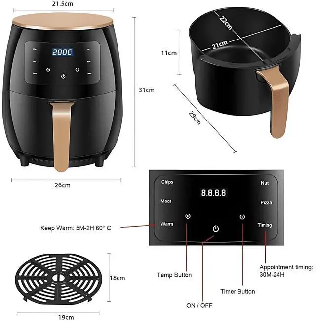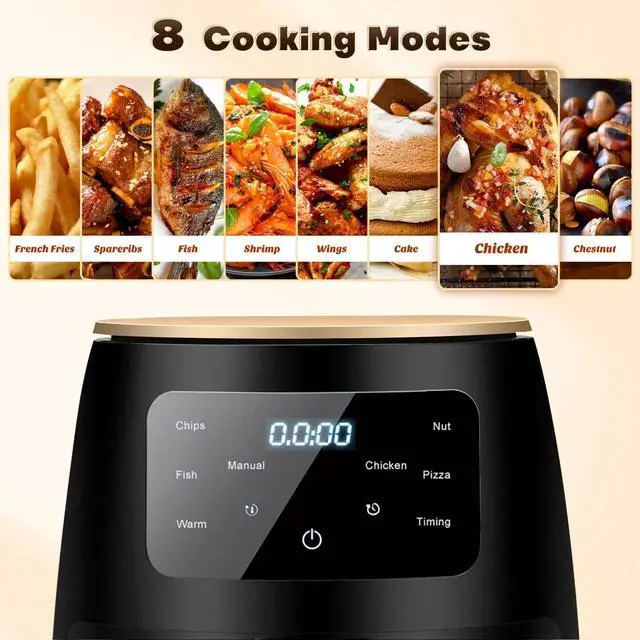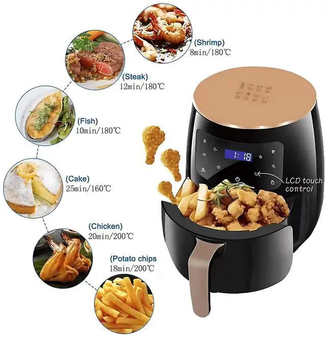 Elevate your cooking experience with this 6L Digital Air Fryer, designed for efficiency and healthy eating. Boasting a powerful 2400W heating system and rapid air circulation technology, it ensures your meals are cooked evenly with up to 85% less fat than traditional frying methods. The intuitive LCD touch screen offers 8 preset cooking modes, allowing you to prepare a variety of dishes effortlessly. Its non-stick basket simplifies cleanup, and the included recipe book inspires culinary creativity. Compact yet spacious, it's perfect for families seeking quick, delicious, and healthier meals.