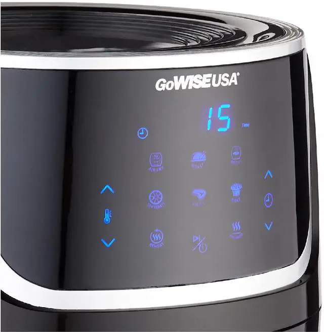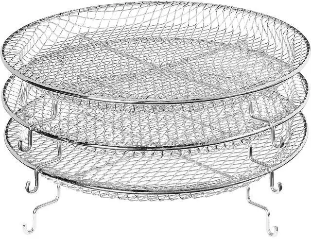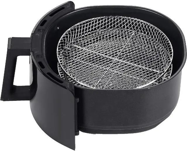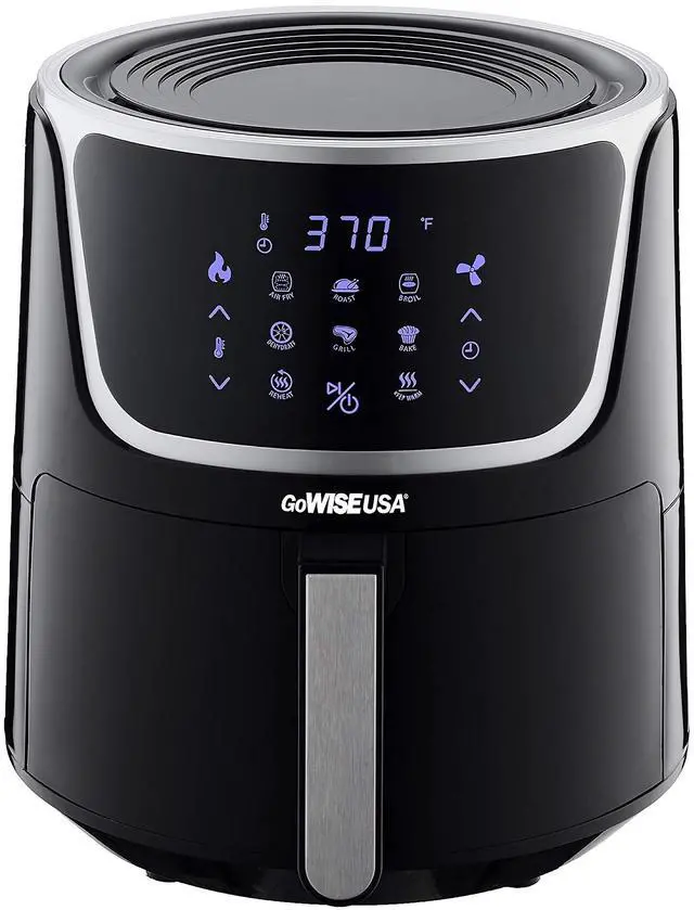 LED touchscreen: Air Fry, Bake, Roast, Grill, Broil, Dehydrate, Keep Warm, and Preheat. The built-in dehydrate function (90°F - 170°F, up to 24 hrs) and 3 stackable racks let you create dried fruits, jerky, and more with ease. The preheat function ensures even cooking by reaching the optimal temperature before you start. Using rapid air technology, it delivers crispy, delicious results with up to 80% less fat. Designed for safety and convenience, it includes auto shut-off, a cool-touch handle, and a dishwasher-safe basket.
