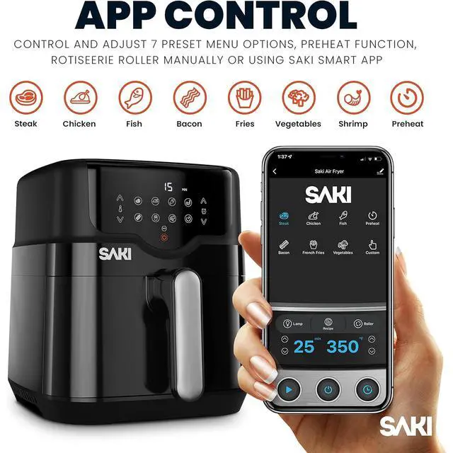 This 4.7-quart smart air fryer delivers fast, healthy cooking with app control and a digital touch panel. Advanced 360° hot air circulation cooks food evenly with minimal oil. 7 preset programs simplify everyday meals, while the ceramic nonstick basket ensures easy cleaning. Compact yet powerful, its perfect for small households seeking convenience and performance.