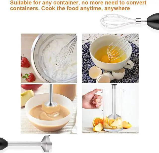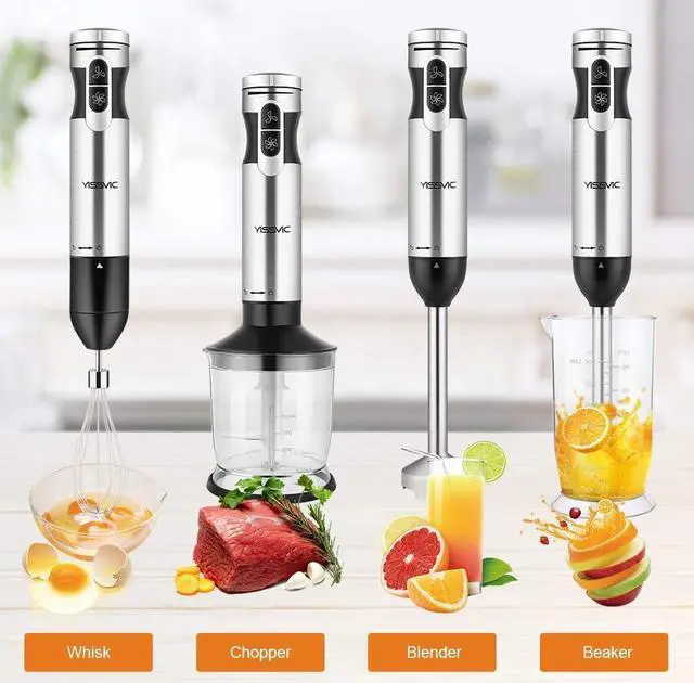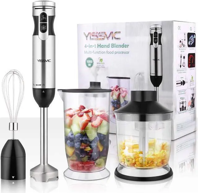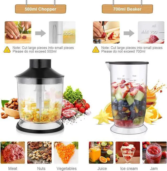 4 In 1 Immersion BlenderThis hand blender kit includes immersion hand blender, 500ml (17oz) food processor, 700ml (24oz) beaker, whisk attachment