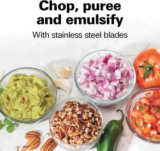 HIGH PERFORMANCE CHOPPING ACTION. Stainless steel blades and powerful 350 watt motor can handle even the toughest ingredients