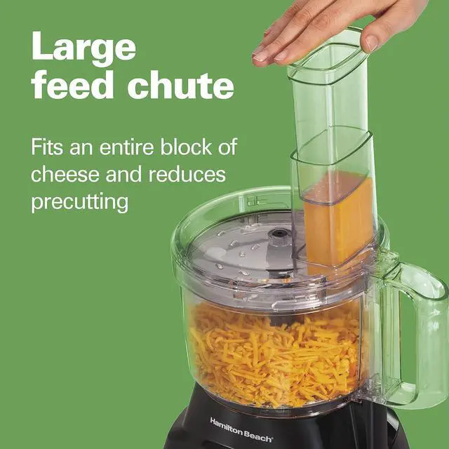Large feed chute: can fit large foods like a whole block of cheese for quick, easy processing and less prep time