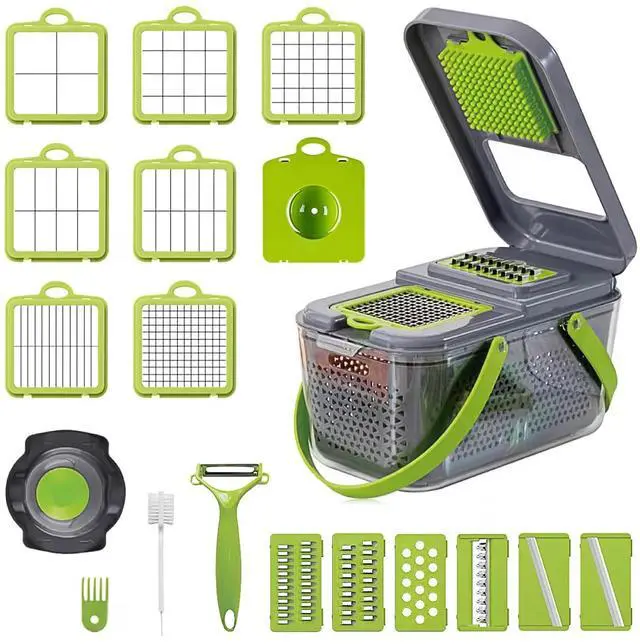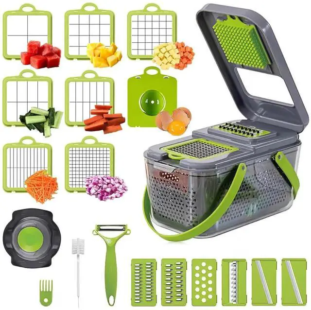 Enhance your culinary experience with our meticulously designed Onion and Food Chopper, an indispensable addition to any kitchen. Crafted for versatility, this appliance features 13 interchangeable blades, offering an array of chopping, slicing, shredding, and grating options to suit your culinary needs. The set includes 7 chopping blades in various sizes, along with 6 additional blades, ensuring precision and ease in food preparation. An included egg white separator further elevates its functionality, allowing for effortless separation of yolks and whites, making it an ideal tool for both novice and seasoned chefs.
