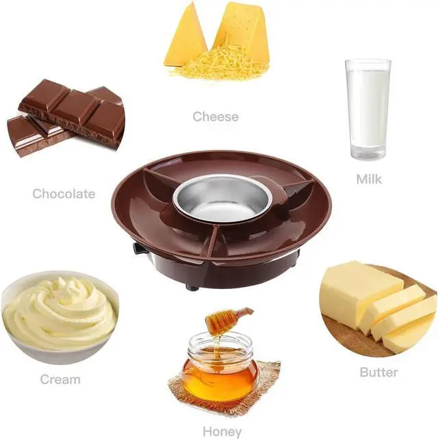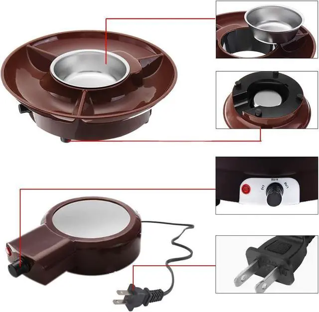 Deluxe Fondue MakerThis fondue electric set comes with a base, removable 260ml melting bowl, removable tray for easy serving and cleaning, and 2 fruit forks.